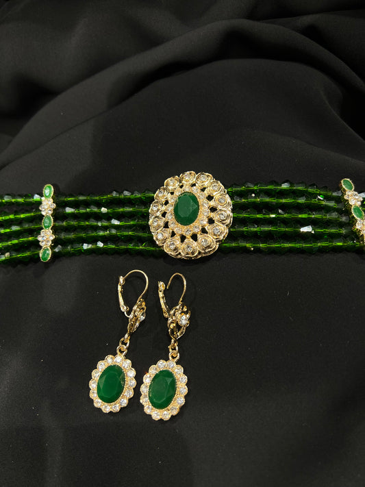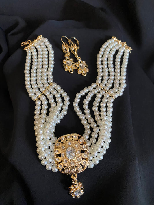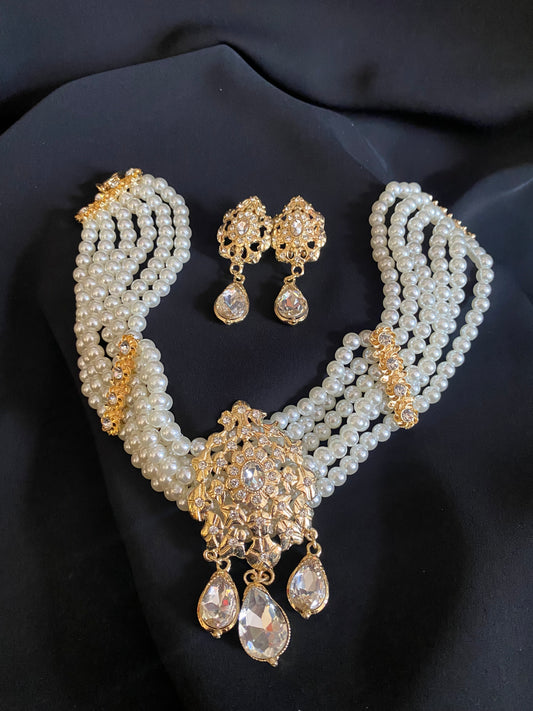 Ensemble Ras du cou et boucles d’oreille blanc motif carré