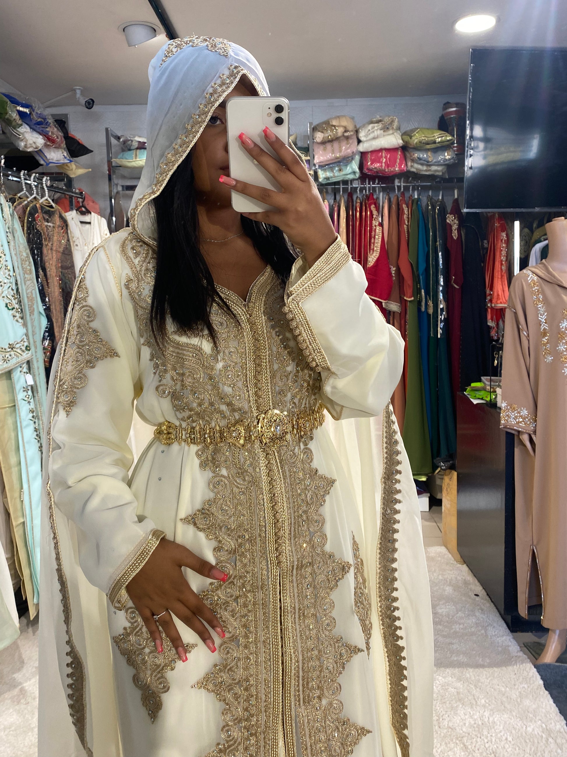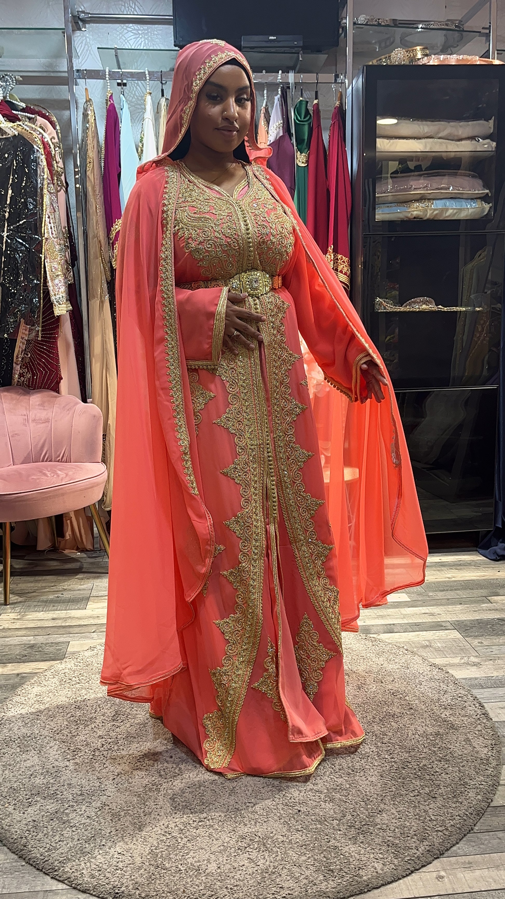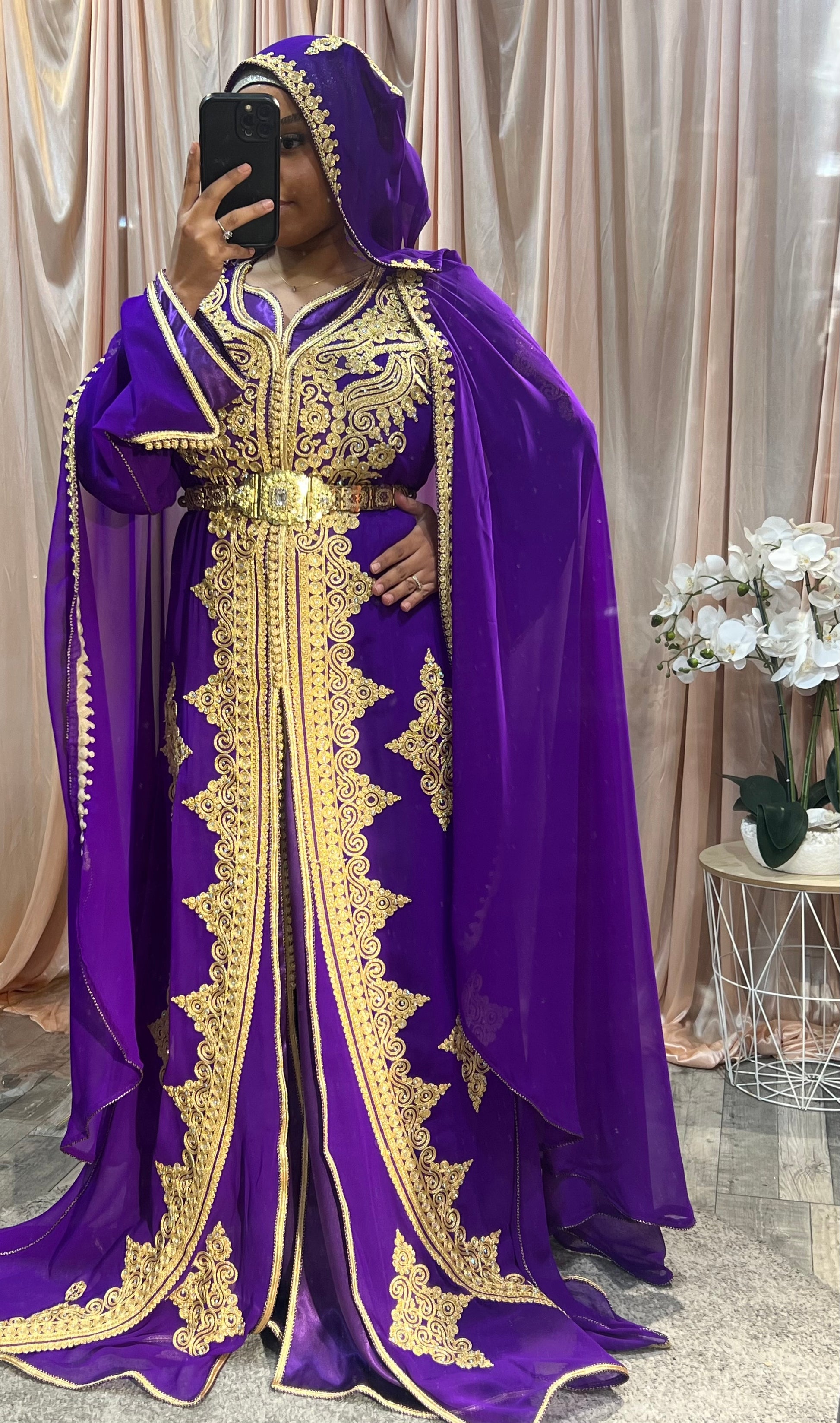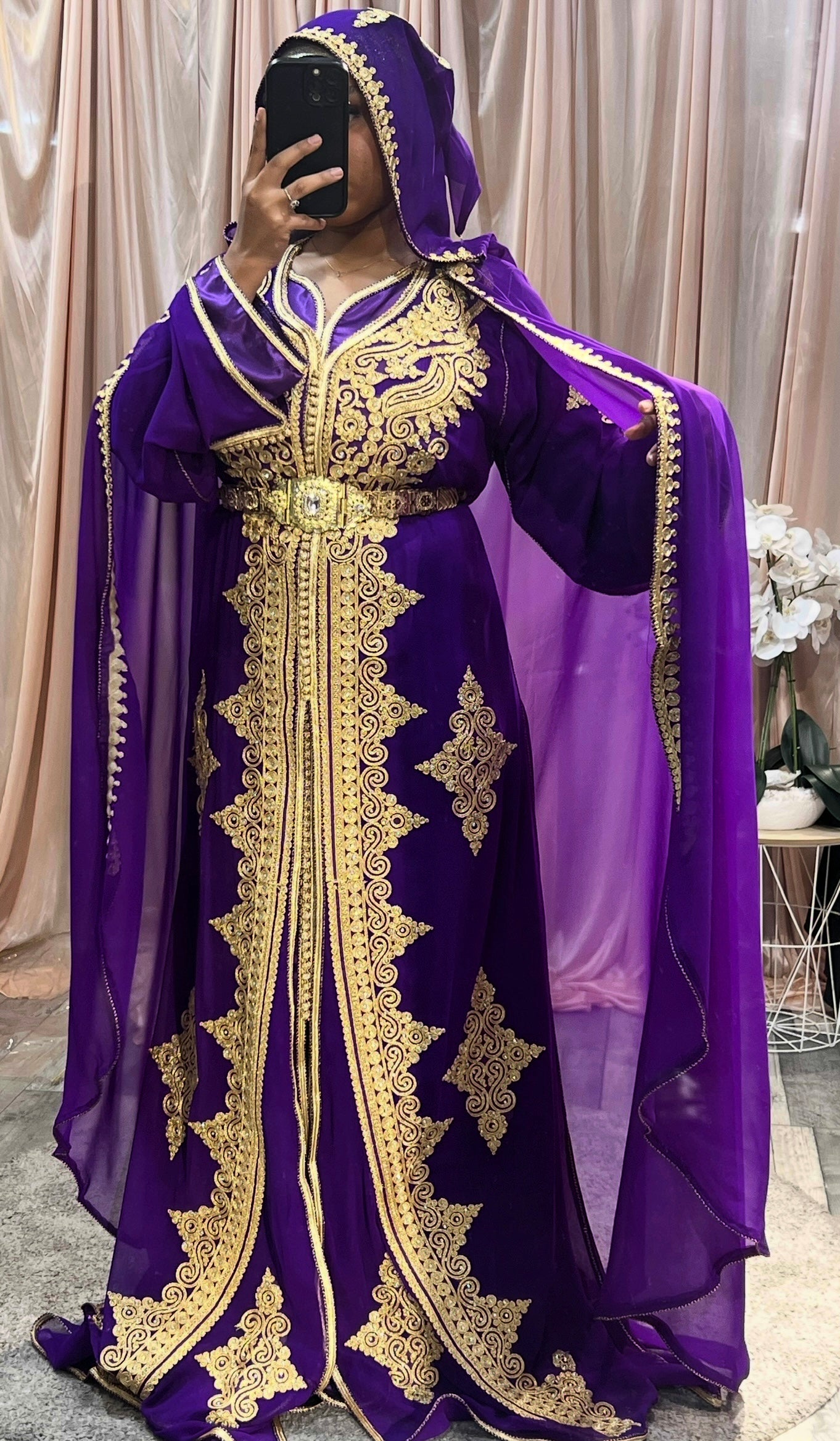 Caftan tissu en mousseline et intérieur en tissu soie