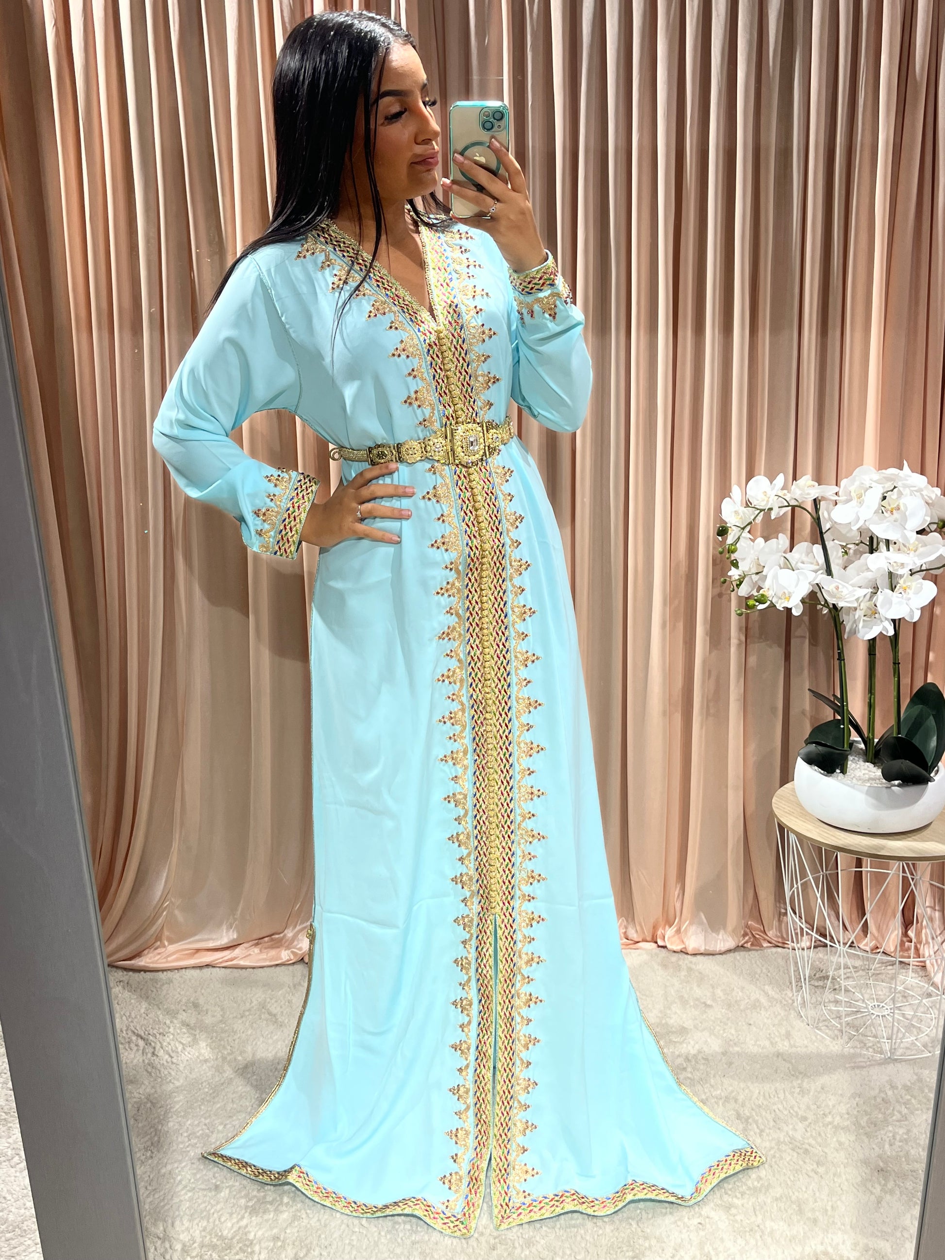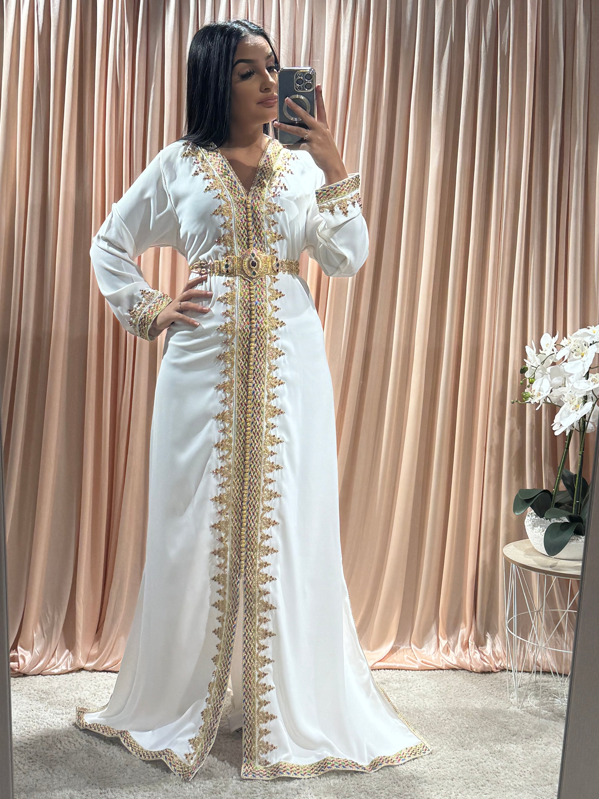 Le caftan Ikram idéal pour des fiançailles, un mariage ou un baptême. Le modèle convient parfaitement à une mariée et à une invitée.