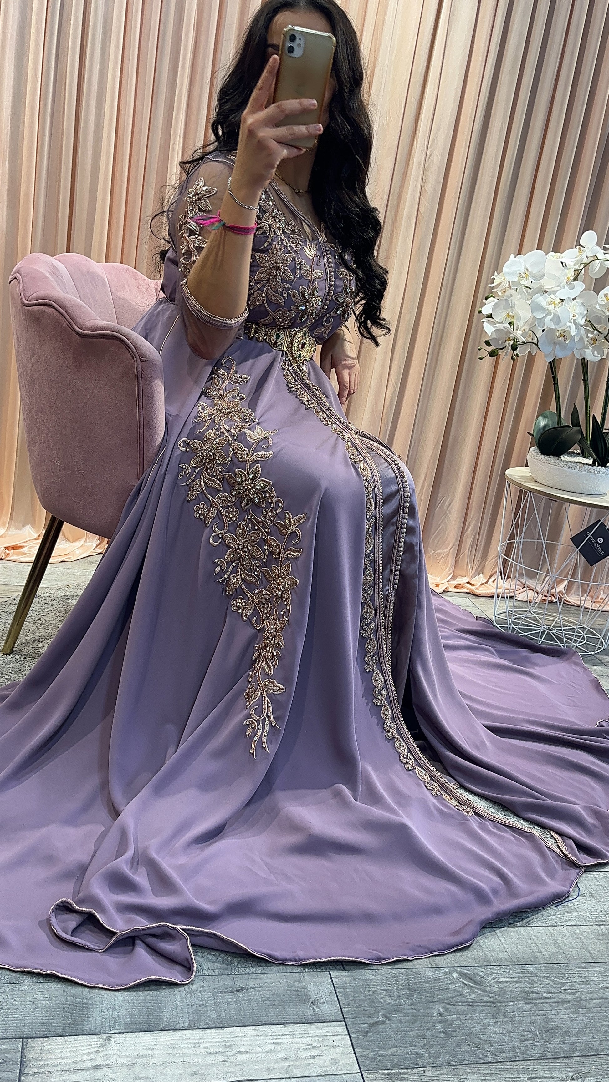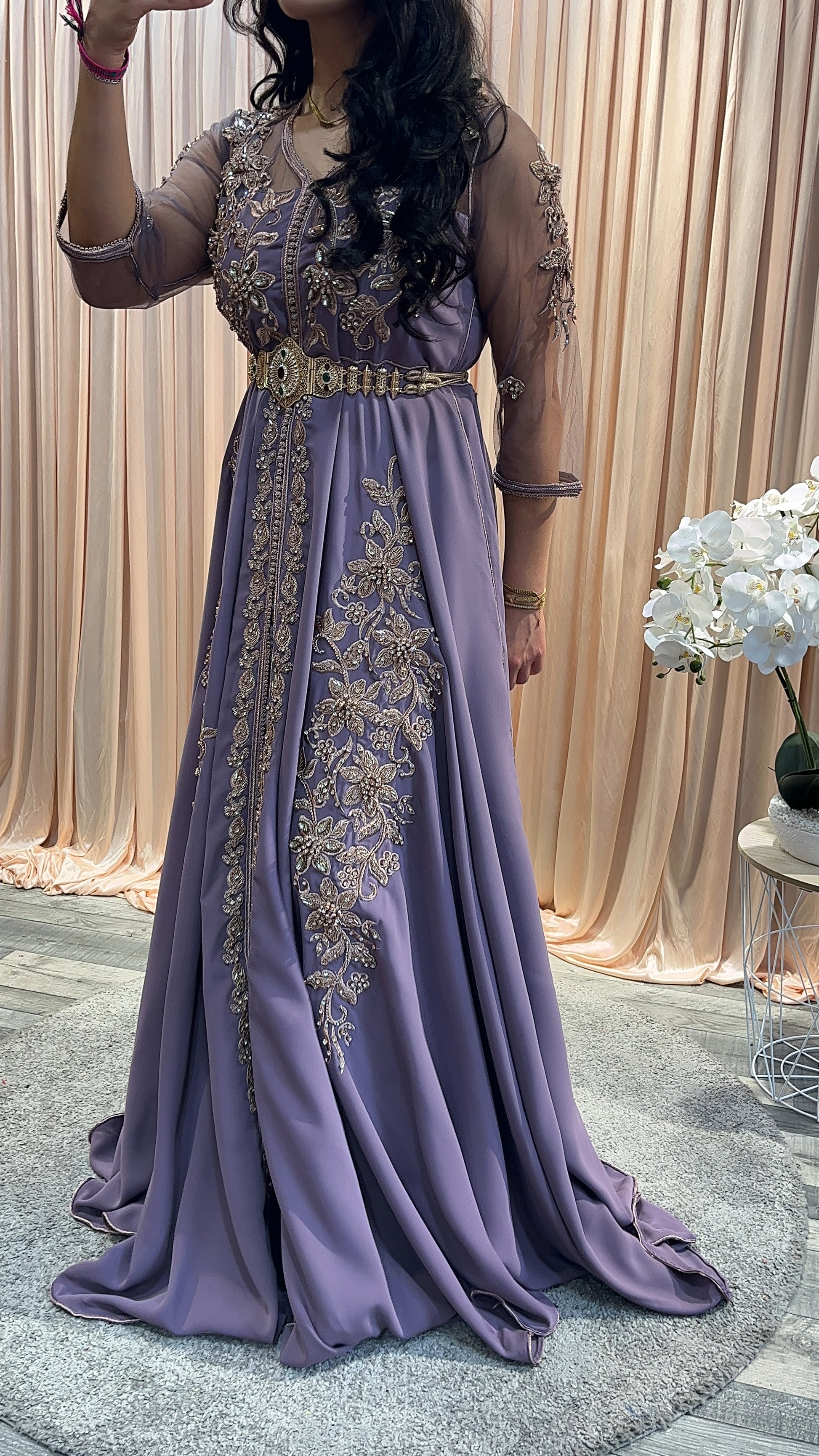 Le caftan Alyaa idéal pour des fiançailles, un mariage ou un baptême. Le modèle convient parfaitement à une mariée et à une invitée.